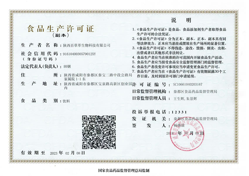本公司現已與多所科研院緊密合作,公司擁有配套完整的提取、分離、萃取、柱層析、濃縮干燥等設備和技術,具有豐富的生產天然植物提取物的經驗和嚴格的質量控制體系。陜西百草萃生物科技有限公司為廣大消費著和客戶提供安全、健康、品質高、能效強的營養(yǎng)健康品,主營產品包括:國食健字鋅硒寶、鋅硒寶、欣寶兒童鋅硒寶、復合鋅硒片、復合蛋白鋅、千凈顆粒、蛋白乳鐵片、瑪咖復合片等、廠家占地五十余畝,廠家建筑面積4000余m2,內設生產車間、質量控制室、產品檢測中心、陰涼倉庫、..